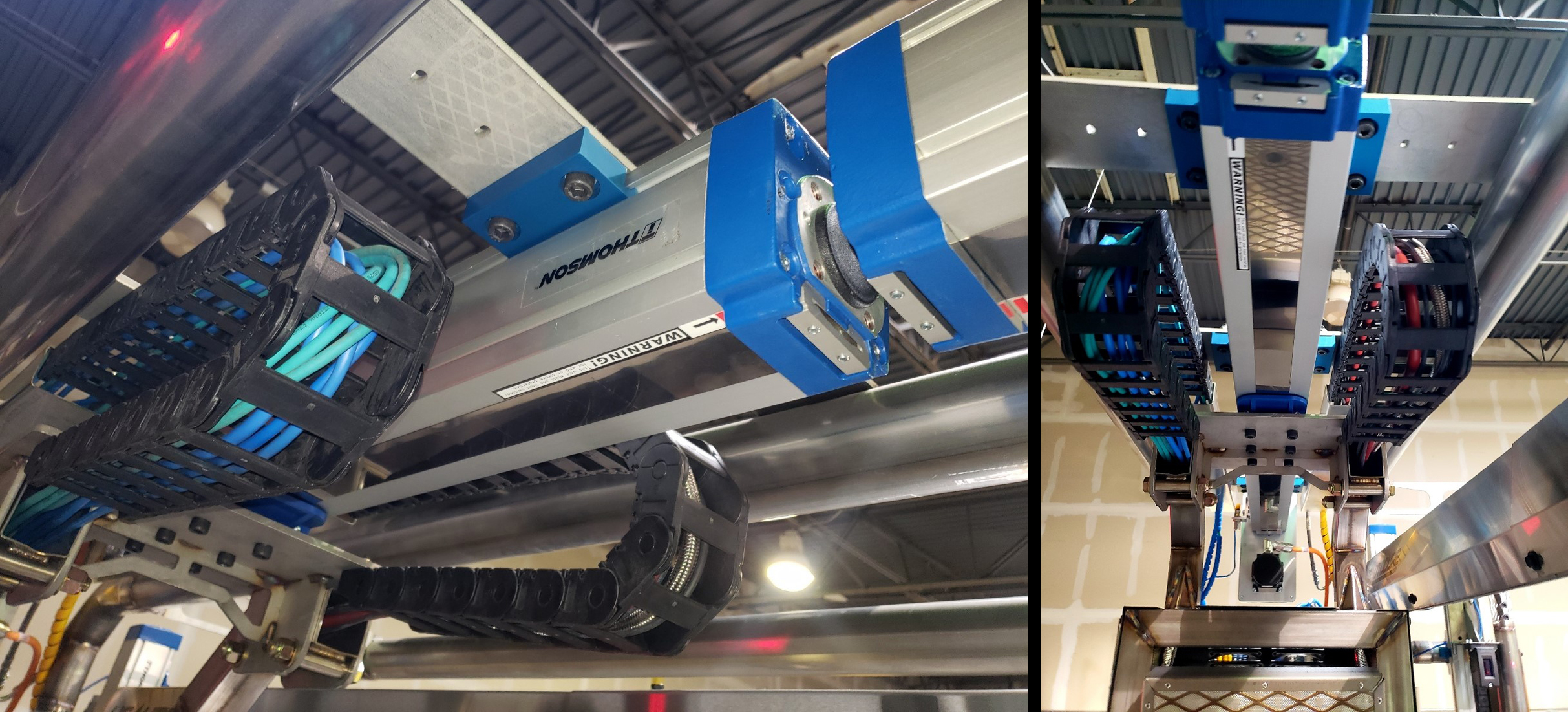 “我們在Thomson產品之前測試的所有產品都需要金屬對金屬的接觸。”U.S. Autocure公司管理合伙人Mickey Meyer說道,“這不僅會有噪音、振動和磨損等問題,還會帶來安全問題。我們的工作環境是Class 1 Division 2(1類2區)的危險區域,任何可能引起火花的摩擦都可能點燃霧化的油漆蒸汽。而Thomson直線運動系統使我們能夠使用塑料螺母,這也有助于減少磨損和能耗。”